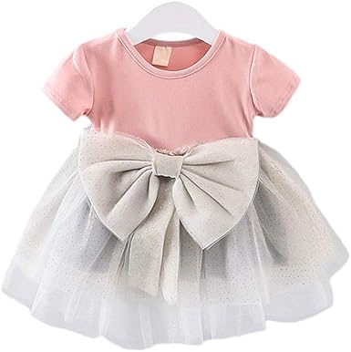 Miyanuby Vestidos Para Bebes Nina Verano Manga Corta Cuello En V Bowknot Vestidos Bebe Nina Fiesta Ropa De Una Pieza Para Bebes Nina De 6 Meses A 4 Anos Amazon Es Ropa Y
